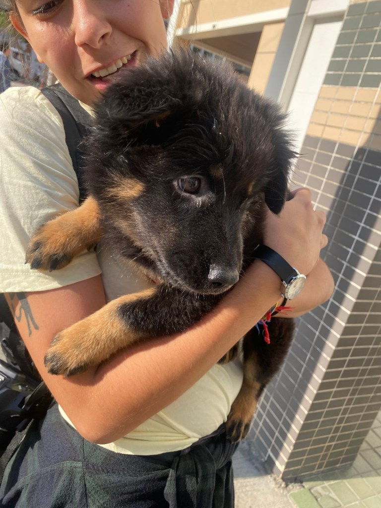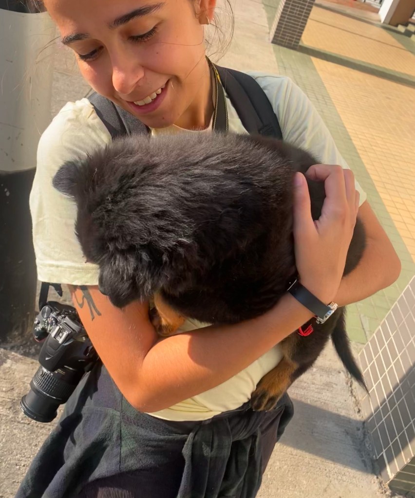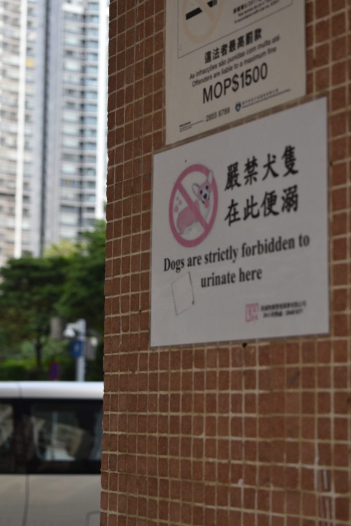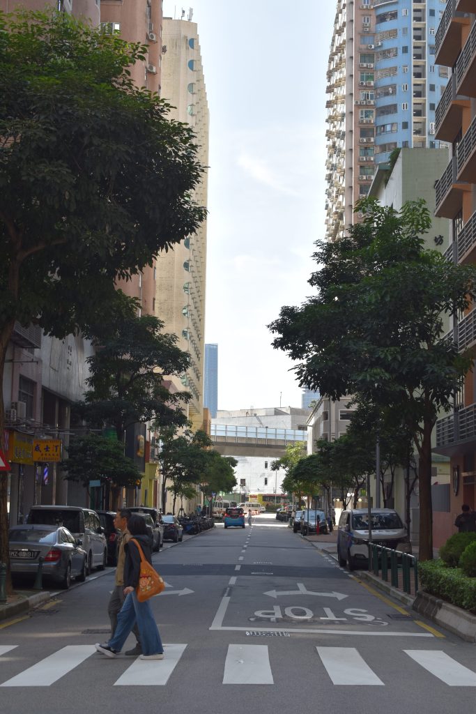o objetivo era então irmos ter com a nossa companheira de aventuras – vidinha – eu com um latte de caramelo e a joana com um cappuccino com oat milk – a pé até ao ponto de encontro, no centro de macau. entre aventuras e contornos de pista, encontrámos um pequeno cão – nestes casos dá jeito ter uma amiga extrovertida, já que se estivesse sozinha teria visto o pequeno cachorro de longe, mas com a companhia da joana fomos falar com a dona do pequeno, que imediatamente me perguntou “do you want to hold him?”. dei por mim com um cãozinho ao colo, e o mundo nunca pareceu mais belo (desculpa estrela!).