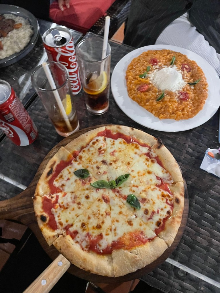 já com a vidinha a nosso lado – caminhámos até ao Bella Taipa – um restaurante italiano com vista para a vila – e partilhámos traumas, histórias, e muitas conversas – as três sozinhas na esplanada – falámos de literatura, de arte, de vida e de tudo um pouco. foi uma noite muito bonita e calma, e a comida estava boa. no final de tudo – partilhámos táxi para casa, e assim se fechou um dia.